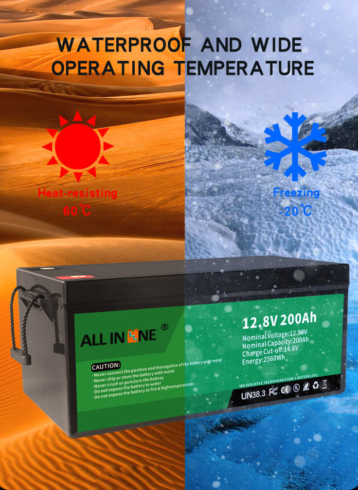 4. Temperatura e gjerë e punës: Bateria LiFePO4 ka një gamë të gjerë të temperaturës së punës prej -20 ° C ~ 60 ° C.