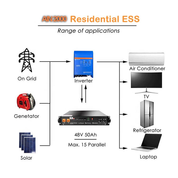 1. Bateria e sistemit diellor AIN2000 48v është zhvilluar me strukturë standarde LFP 3.2V 50Ah dhe EV me performancë të lartë për të garantuar sigurinë dhe jetën e jashtëzakonshme të shërbimit.