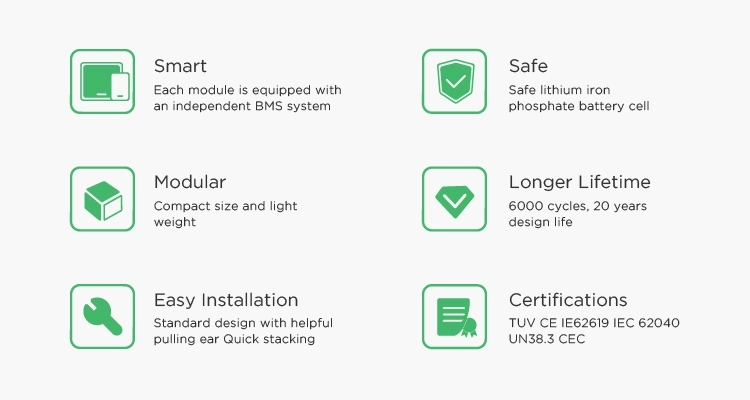 Certifikimi & Siguria Stadard | Akredituar TUV / CE / EN62619 / IEC62040 / UN38.3 / CEC | |